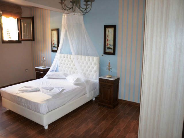1/4 apartman: Četvorokrevetni apartman se nalazi u prizemlju u istom nivou sa bazenom ili na prvom spratu i sastoji od veoma prostrane spavaće sobe i ogromnog dnevnog boravka. Spavaća soba u svom sastavu ima bračni ležaj dimenzija (140X180 cm) orman, noćni stočić sa ogledalom, fen za kosu, dva stočića pored kreveta. Dnevni boravak se sastoji od sofe na razvlačenje koji kada se razvuče ima dimenzije (160X200 cm). U dnevnoj sobi se takodje nalazi TV/KAT, kao i kuhinja koja je potpuno opremljena posudjem za četiri osobe. U kuhinji je šporet sa dve ringle, frižider, aspirator, kao i sto za ručavanje sa četiri stolice. Kupatilo je izuzetno prostrano i poseduje tuš kabinu. Ispred ulaza u apartman je terasa sa stolom sa četiri stolice. Apartman poseduje centralni klima sistem tako da se podjednako hlade sve prostorije.
